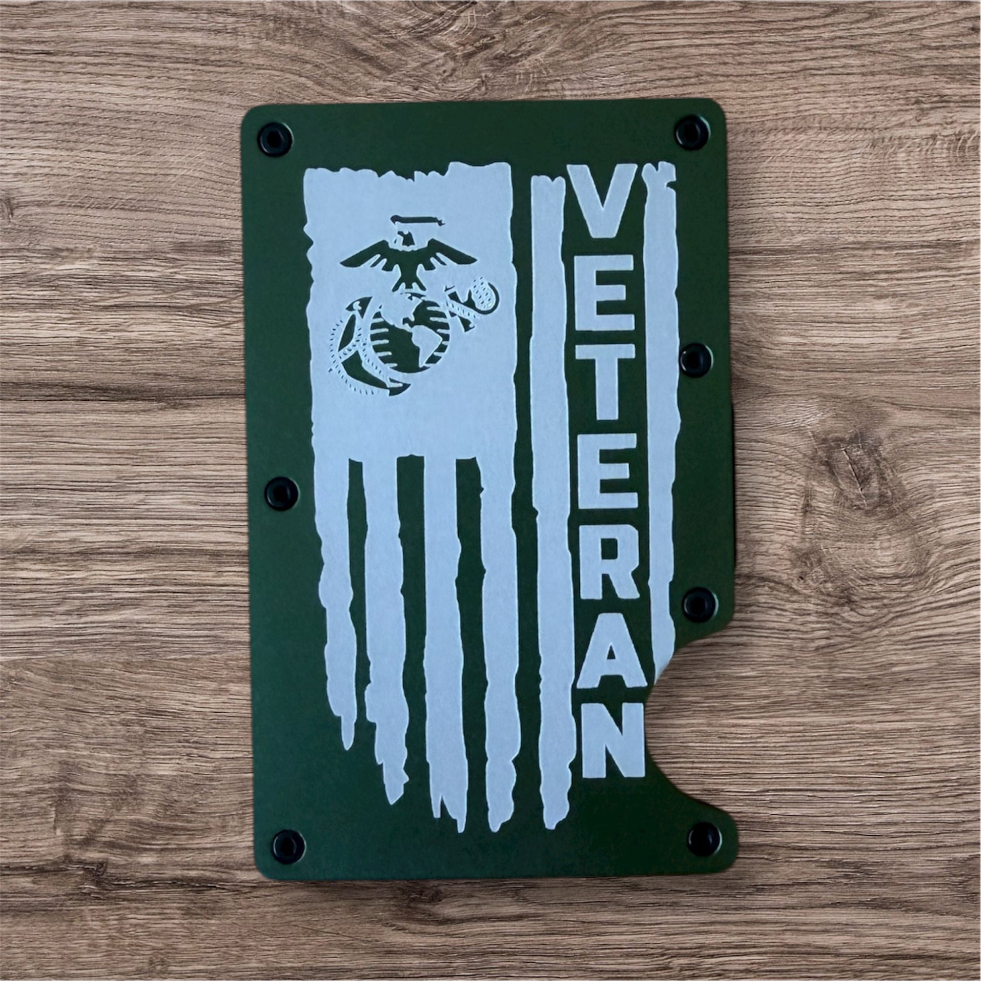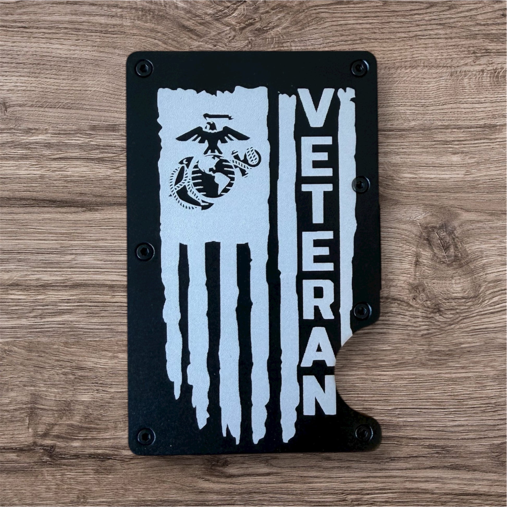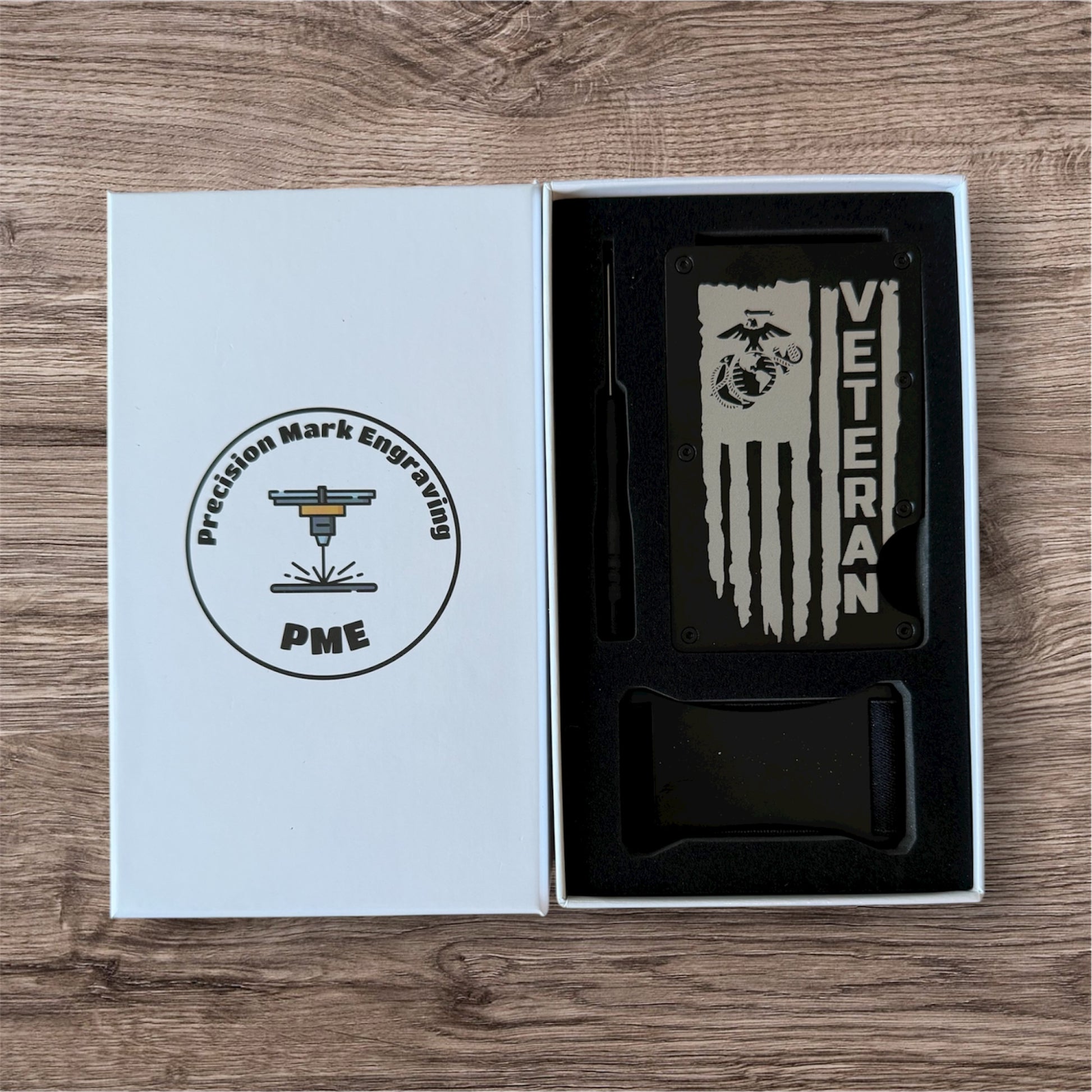 Carry your cards with pride and security. This RFID-blocking minimalist wallet is crafted for veterans and Marine Corps supporters who appreciate smart, sleek design with personal meaning. Featuring the iconic Eagle, Globe, and Anchor emblem, an American flag motif, and bold “VETERAN” lettering, this wallet is a standout tribute to your service.